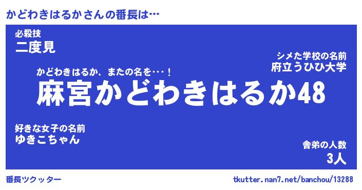 | 肩書あだ名 | 『かどわきはるか御曹司』 |