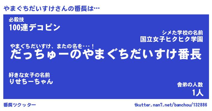 | 伝説のあだ名 | 『伝説のスナイパーやまぐちだいすけ』 |
