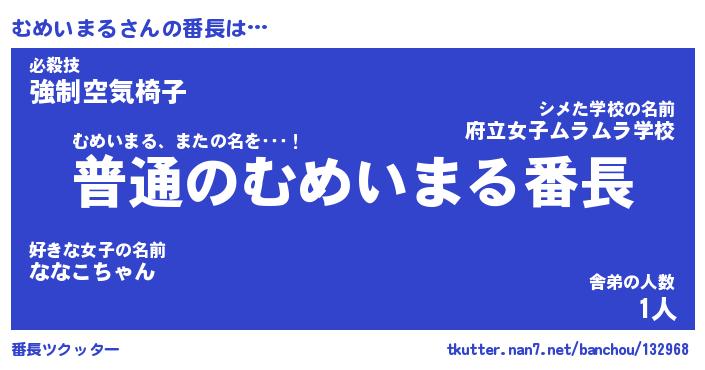 | ファンタジー風あだ名 | 『ムメフェル』『エターナルムメイマルー』 |