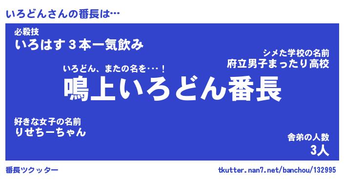 | 意味不明あだ名 | 『ペロリンいろどん』『永久保存いろどん』 |