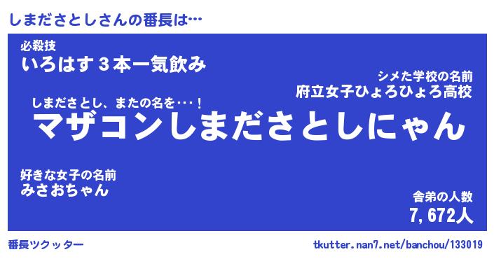 | ヘコむあだ名 | 『しまっふぃ~』『牛乳』『しま太郎』 |