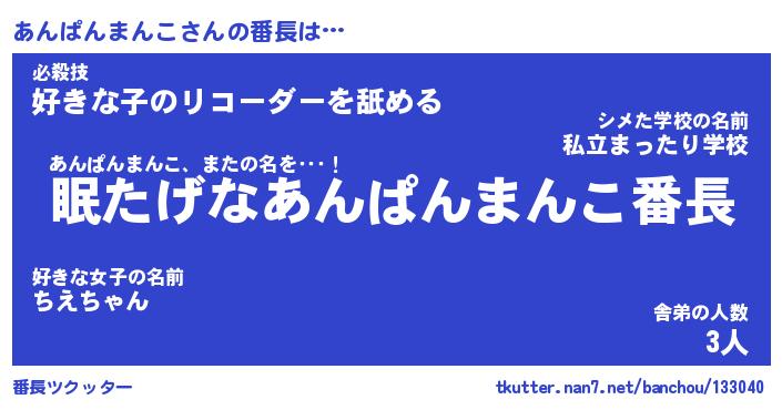 | ポケモン風あだ名 | 『アンチュウ』『アンパダネ』 |