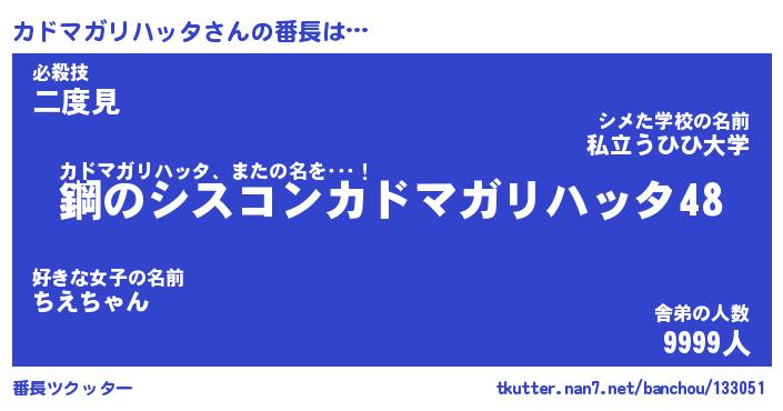 | ヒーロー風カッコイイあだ名 | 『スーパーカドマガリハッタ』 |