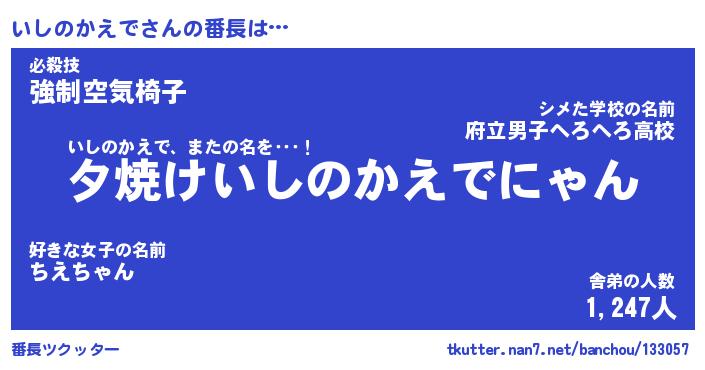 | ピコ太郎風あだ名 | 『イコ四郎』『ピイ一郎』『イシ八郎』 |