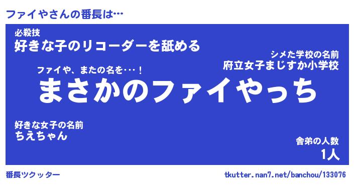 | 肩書あだ名 | 『ファイや店長』『ファイや国家主席』 |