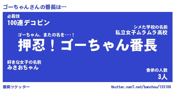 | ピコ太郎風あだ名 | 『ゴコ一郎』『ピゴ史郎』『ゴー十郎』 |