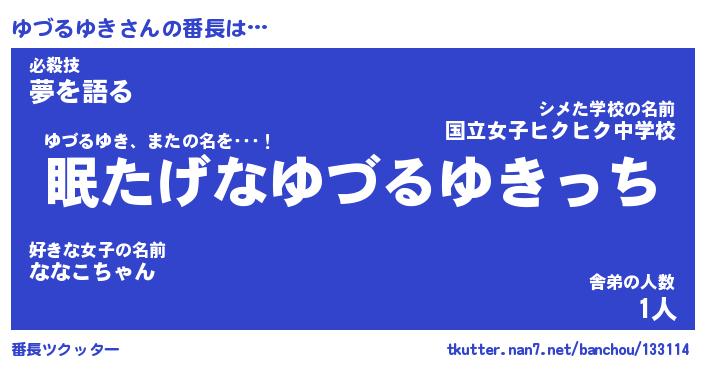 | ヘコむあだ名 | 『ゆづにー』『牛乳』『ゆづっぺ』 |