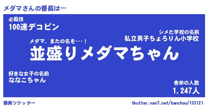 | ファンタジー風あだ名 | 『メダフェル』『エターナルメダマー』 |