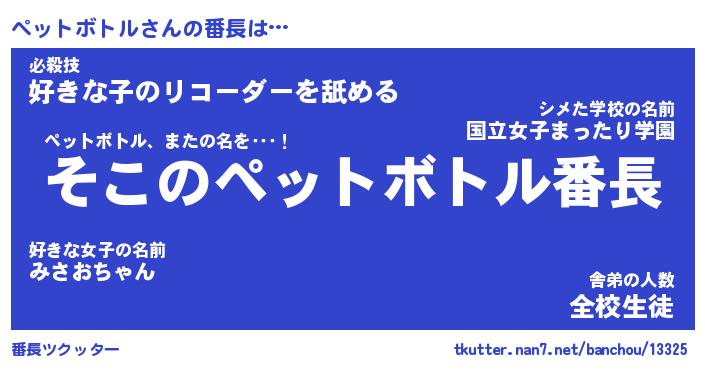| 肩書あだ名 | 『ペットボトルCEO』『ペットボトル班長』 |