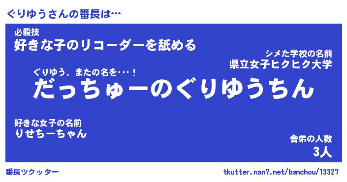 | 肩書あだ名 | 『ぐりゆう店長』『ぐりゆう大統領』 |