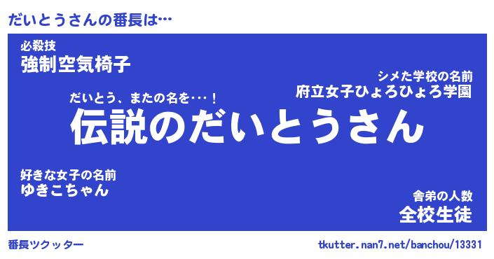 | 肩書あだ名 | 『だいとう社長』『だいとう総理大臣』 |