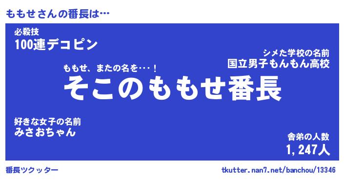 | 肩書あだ名 | 『ももせ御曹司』『ももせ総理大臣』 |
