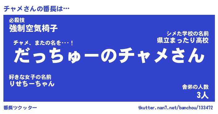 | ヘコむあだ名 | 『チャにー』『レバニラ』『チャ太郎』 |
