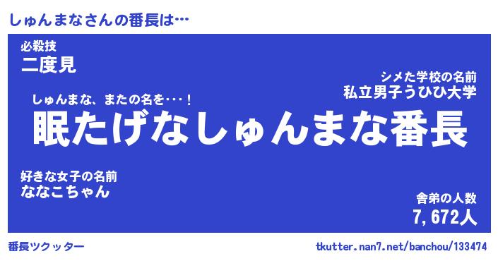 | 伝説のあだ名 | 『封印されしスナイパーしゅんまな』 |