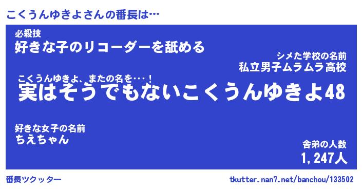 | ヘコむあだ名 | 『こくっふぃ~』『つくし』 |