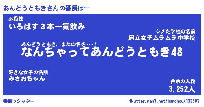 | 肩書あだ名 | 『あんどうともき御曹司』 |