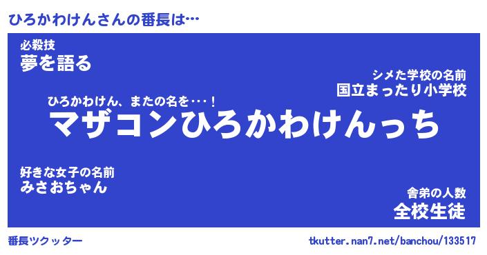 | ヒーロー風カッコイイあだ名 | 『スーパーヒロカワケン』『銀牙騎士ヒロ』 |