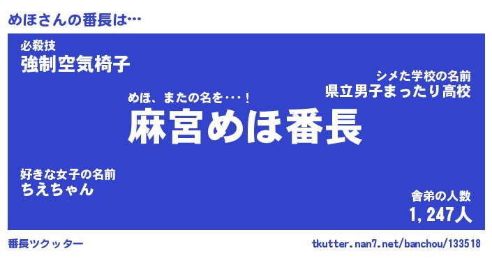 | 肩書あだ名 | 『めほ店長』『めほ大統領』 |