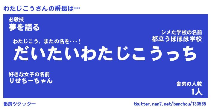 | 肩書あだ名 | 『わたじこう御曹司』『わたじこう校長』 |