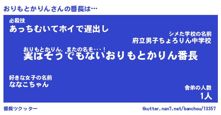 | 伝説のあだ名 | 『封印されしスナイパーおりもとかりん』 |
