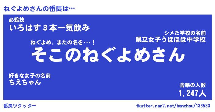| ヘコむあだ名 | 『ねぐふぇ~』『なまこ酢』『ねぐお』 |