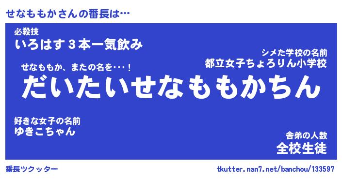 | 肩書あだ名 | 『せなももか社長』『せなももか国家主席』 |