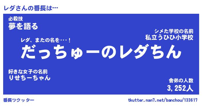 | 2回繰り返すあだ名 | 『レダレダ』『レレダダ』『ぬぷぬぷ』 |