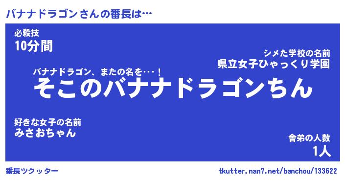 | 男性向けラノベタイトル風あだ名 | 『バナナドラゴンの憂鬱』 |