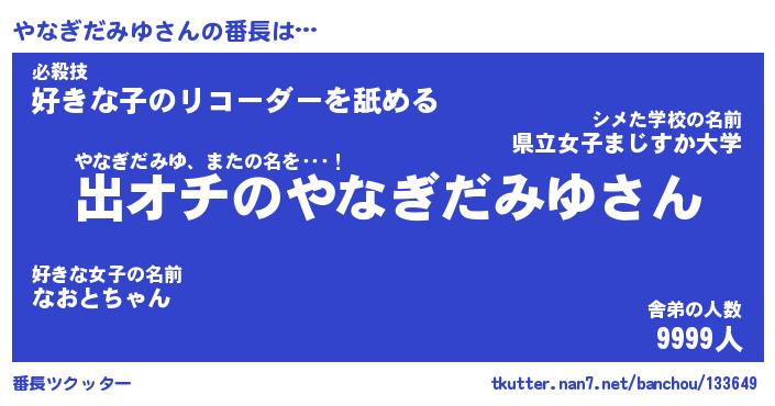 | 恥ずかしいあだ名 | 『プリティーやなぎだみゆ』『やなっちょ』 |