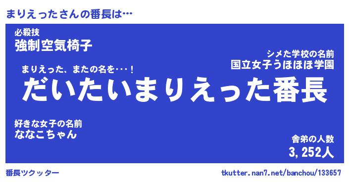 | 肩書あだ名 | 『まりえった店長』『まりえった国家主席』 |
