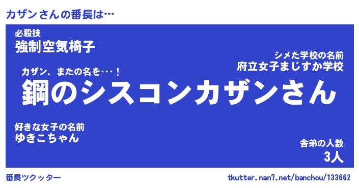 | ヒーロー風カッコイイあだ名 | 『スーパーカザン』『ウルトラカザンマン』 |