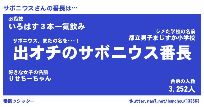 | ファンタジー風あだ名 | 『サボフェル』『エターナルサボニウスー』 |