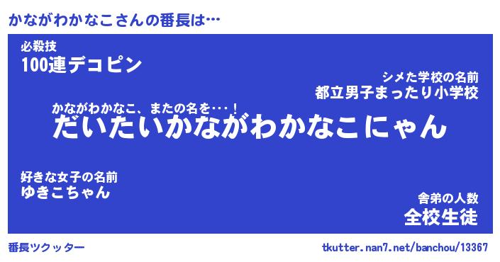 | 2回繰り返すあだ名 | 『かなかな』『かかなな』『いじいじ』 |