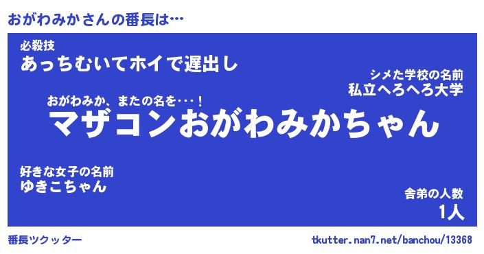 | 伝説のあだ名 | 『封印されしスナイパーおがわみか』 |