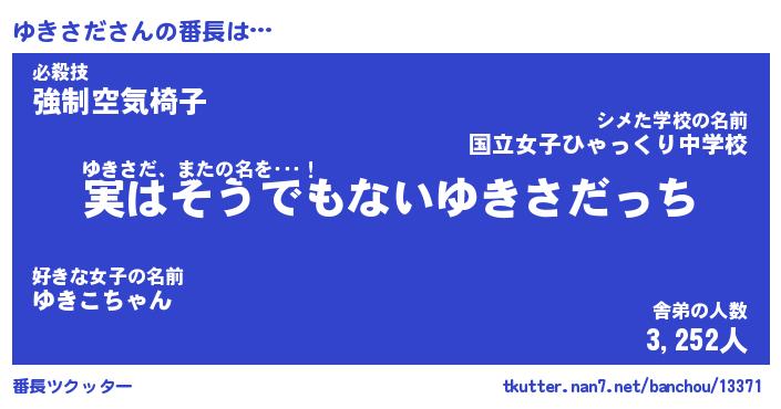 | ファンタジー風あだ名 | 『ユキフェル』『エターナルユキサダー』 |
