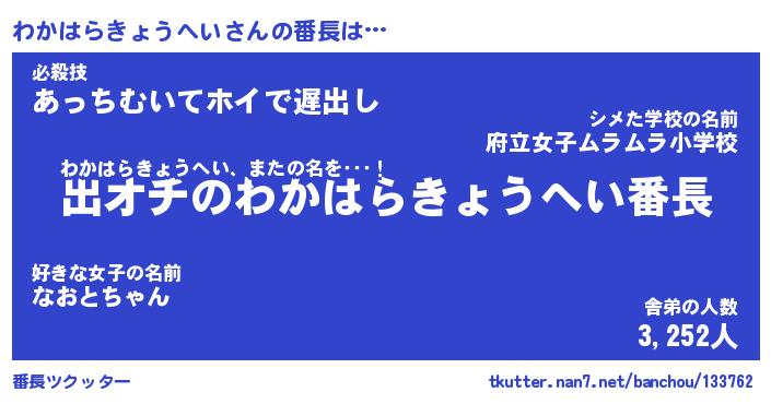 | 伝説のあだ名 | 『伝説のスナイパーわかはらきょうへい』 |