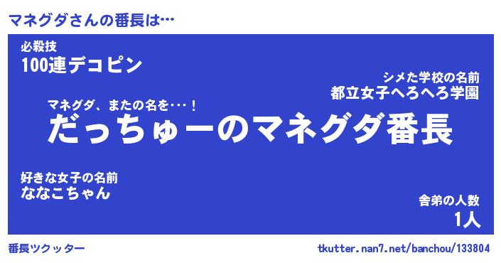 | 2回繰り返すあだ名 | 『マネマネ』『ママネネ』『ねばねば』 |