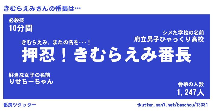 | ヒーロー風カッコイイあだ名 | 『スーパーキムラエミ』『銀牙騎士キム』 |