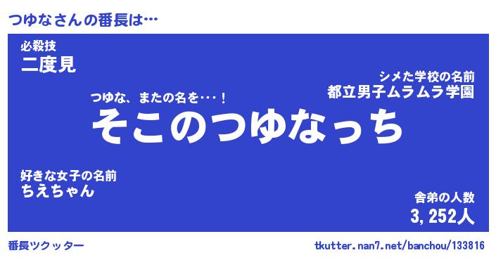 | 2回繰り返すあだ名 | 『つゆつゆ』『つつゆゆ』『ぬるぬる』 |