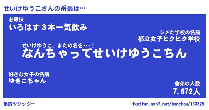 | ヒーロー風カッコイイあだ名 | 『スーパーセイケユウコ』『炎刃騎士セイ』 |