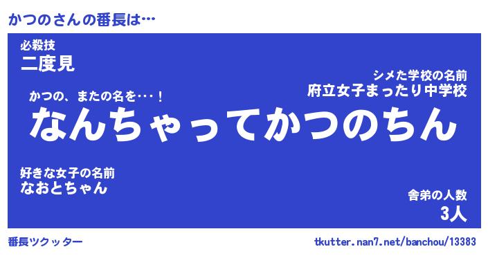 | 伝説のあだ名 | 『伝説のスナイパーかつの』 |