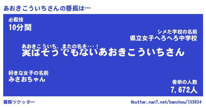 | 男性向けラノベタイトル風あだ名 | 『アオキコウイチアートオンライン』 |