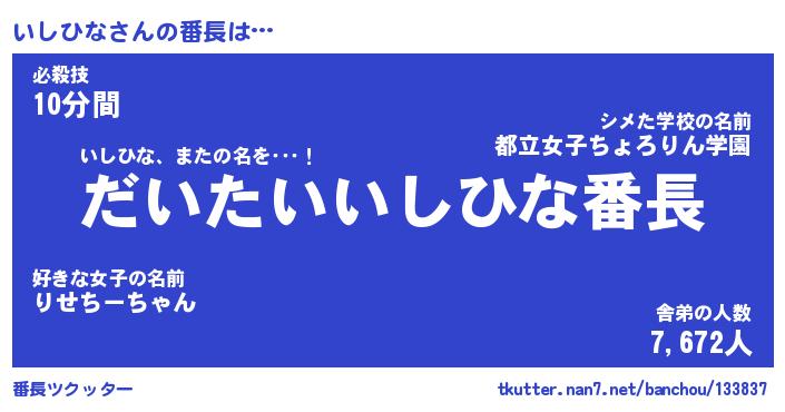 | ピコ太郎風あだ名 | 『イコ六郎』『ピイ一郎』『イシ八郎』 |