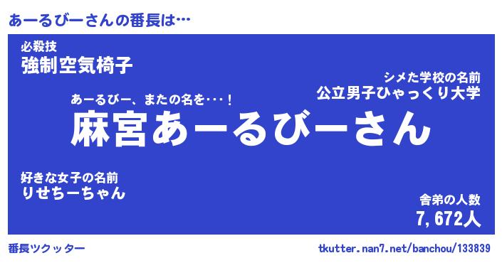 | 肩書あだ名 | 『あーるびー社長令嬢』『あーるびー団長』 |