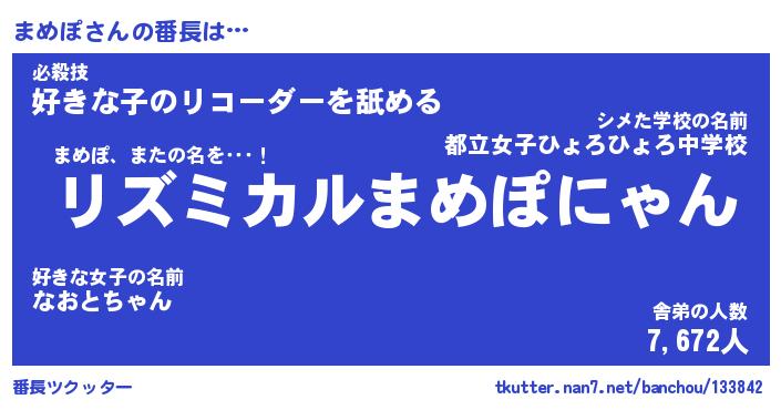 | 肩書あだ名 | 『まめぽ御曹司』『まめぽ国家主席』 |