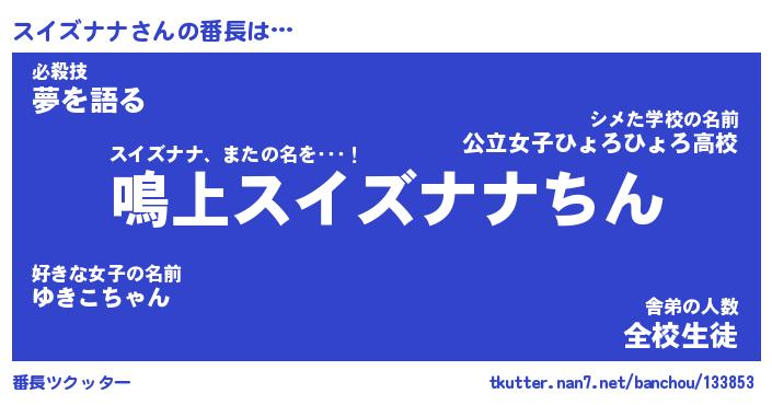 | 肩書あだ名 | 『スイズナナ店長』『スイズナナ大統領』 |