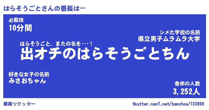 | ピコ太郎風あだ名 | 『ハコ次郎』『ピハ四郎』『ハラ五郎』 |