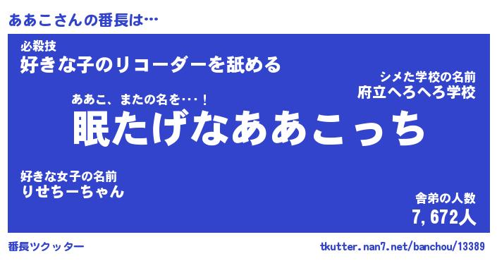 | ヒーロー風カッコイイあだ名 | 『スーパーアアコ』『ウルトラああこマン』 |