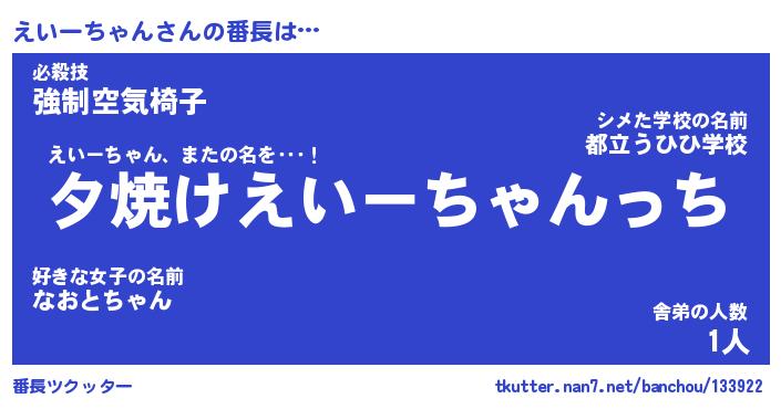 | 伝説のあだ名 | 『封印されしスナイパーえいーちゃん』 |