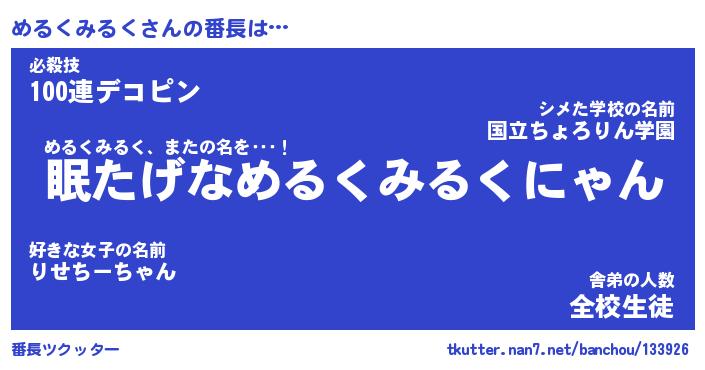 | 2回繰り返すあだ名 | 『めるめる』『めめるる』『ねとねと』 |